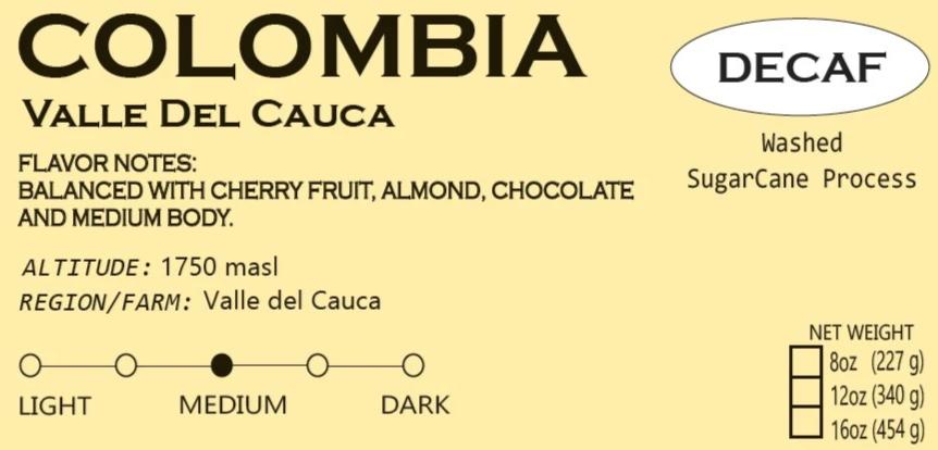Farmers in this region are strongly aware of the importance of the preservation of natural resources, water management and friendly environmental practices. Valle del Cauca was once a prominent producer of coffee, but much of the land is now dedicated to producing sugar cane.This coffee was decaffeinated using the Sugarcane Process.